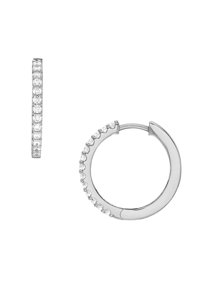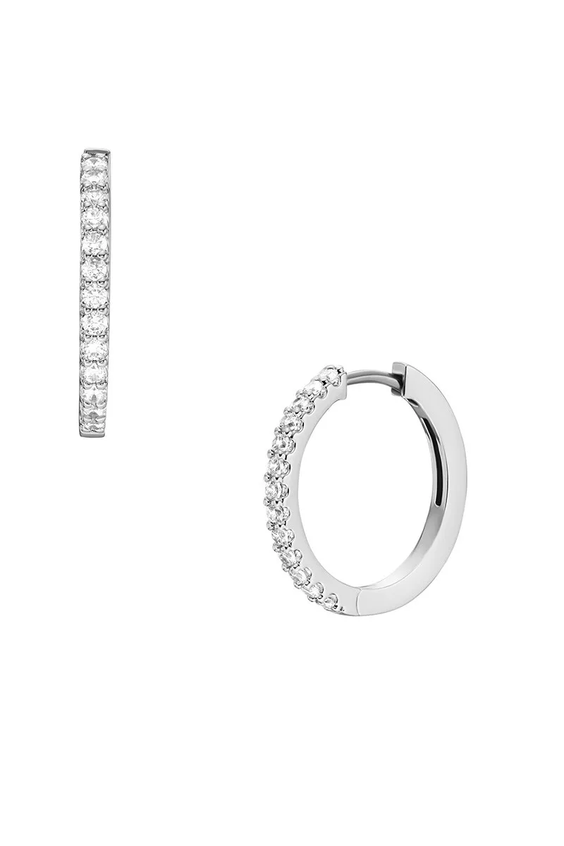 Fossil ženske minđuše od mesinga srebrne boje sa belim cirkonima. Dimenzije: 17.7 x 1.6mm