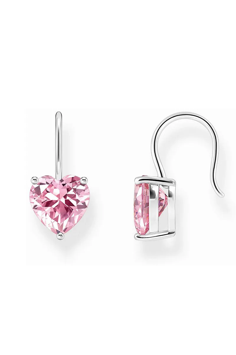 Thomas Sabo srebrne ženske minđuše od 925 srebra sa roze cirkonom u obliku srca. Dimenzije: 18x9mm