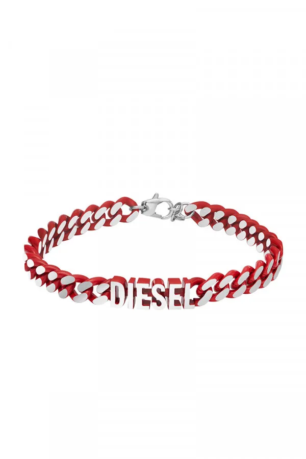 Diesel ženska narukvica od nerđajućeg čelika u kombinaciji crvene i srebrne boje.