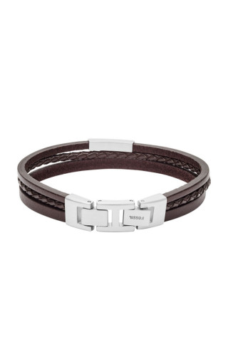 Fossil muška trostruka narukvica od prirodne braon kože i nerđajućeg čelika. Dužina narukvice 180-195mm.